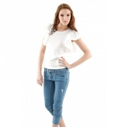 Chemisier à manches courtes drapées, pour un style féminin et élégant.